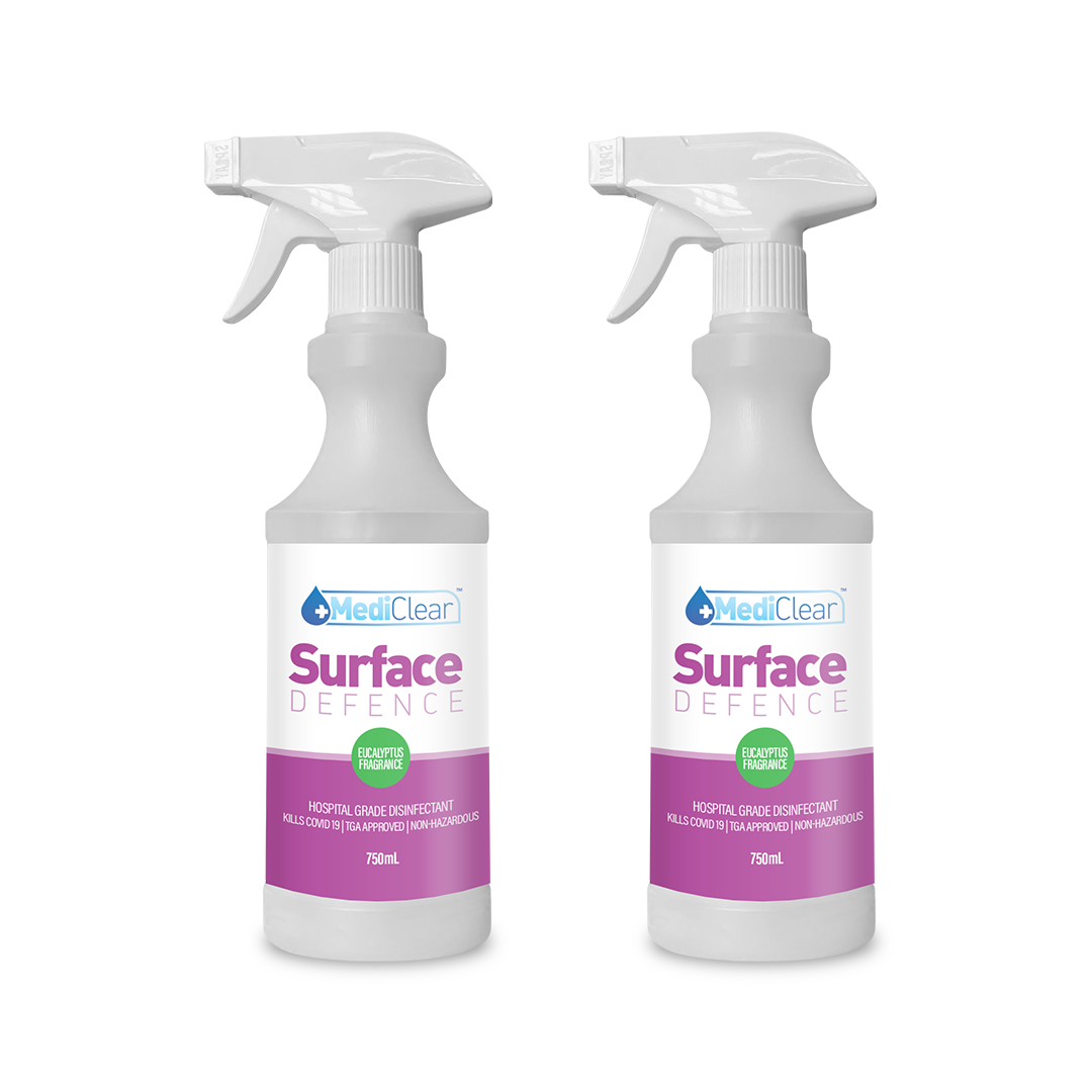 Mediclear Surface Defence is a hospital-grade surface sanitiser and cleaner formulated to kill COVID-19 and other harmful germs. It cuts through sweat, oils, and everyday grime, making it ideal for high-touch areas in cafés, gyms, offices, schools, childcare centres, factories, and commercial cleaning operations.