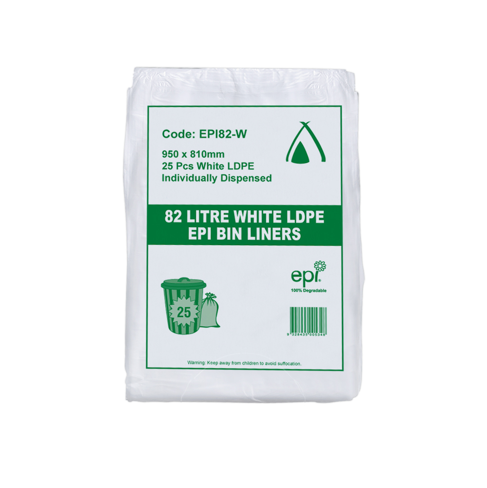 100% degradable, Eco EPI Bin Liners will commence degrading process when subjected to sunlight, heat or mechanical stress and complete the process when buried in soil of compost facilities. They are high density HDPE with EPI additive. Environmentally friendly.