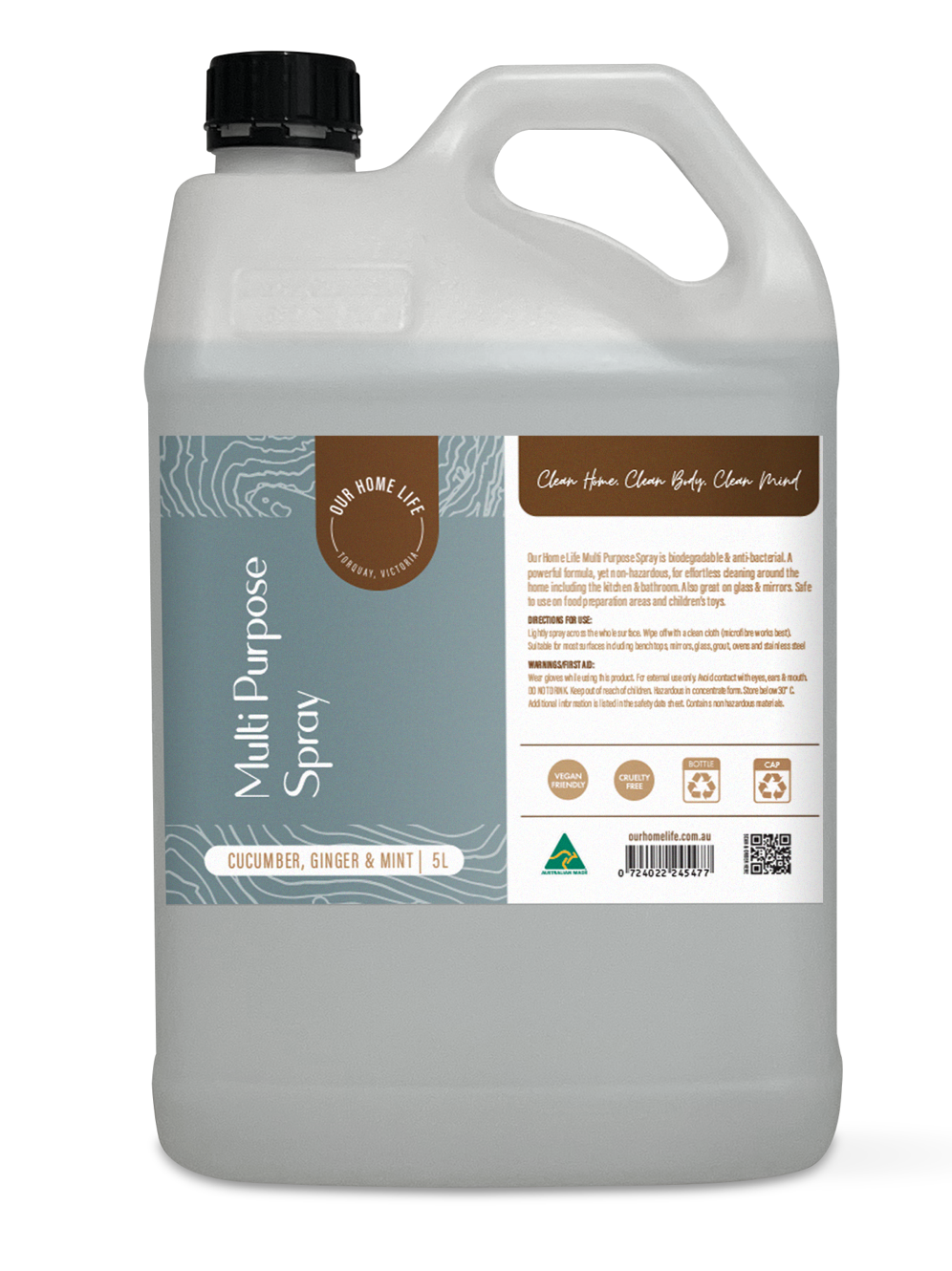 Our Home Life Multi Purpose SPRAY 500ml has been specially developed by professional cleaners to minimise the time spent cleaning in your home. Its an antibacterial Multi Purpose spray that kills harmful germs and pathogens on any surface. Also great for mirrors, windows and glass. Australian made cleaning products, Phosphate free, grey water and septic safe. Great for kitchens, cafes and AirBnB cleaning, to keep you, your family, staff and customers safe. Our Home Life are wholesale cleaning suppliers of Australian Made Cleaning Products.
