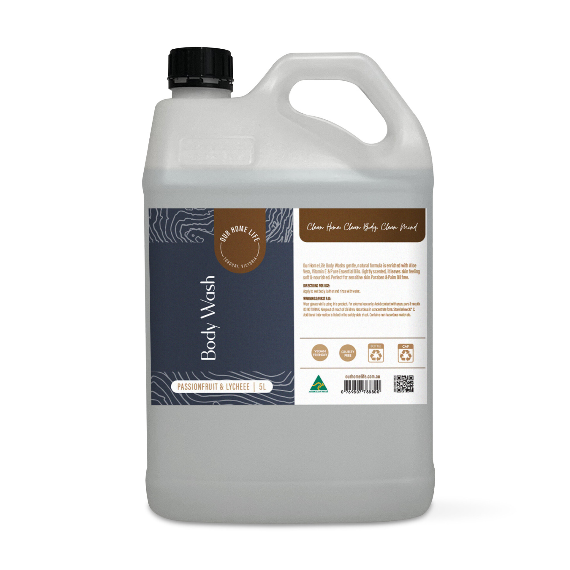 Our Home Life Body Wash has a gentle, natural formual enriched with Aloe Vera, Vitamin E & Pure Essential Oils. Lightly scented. Leaves skin feeling soft and nourished. Perfect for sensitive skin. Palm oil free, no harsh chemicals.
