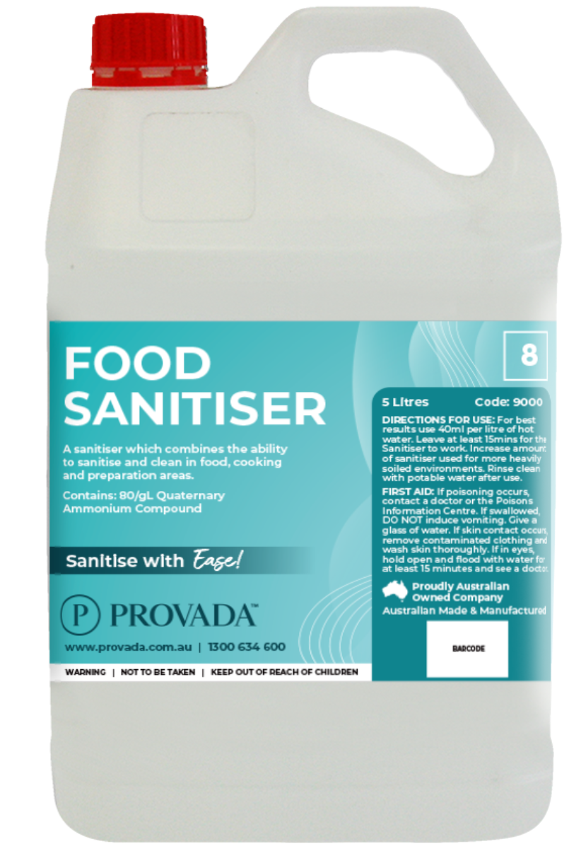 A sanitiser which combines the ability to sanitise and clean in food, cooking and preparation areas.