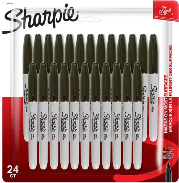 These Sharpie Fine Permanent Markers mark on paper, plastic, metal, and most other surfaces. The resilient ink is quick-drying and resistant to both fading and water.